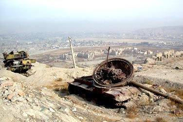 HOME | NEWS The furious US attack on Afghanistan wiped out the Taliban regime ushering in the way for the entry of Northern Alliance forces into Kabul. The picture shows two Taliban tanks destroyed by US planes on the outskirts of Kabul. Photo: Bostjan Slatensek |
